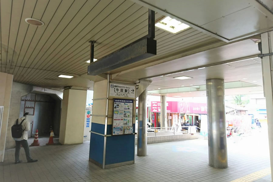 ![]() ①牛田駅をご利用の方は改札出てすぐの道路を右に曲がってください。 |